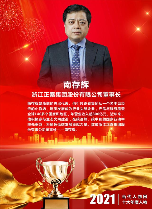 ▋颁奖词:南存辉是浙商的杰出代表。他引领正泰集团从一个名不见经传的小作坊,逐步发展成为行业头部企业,产品与服务覆盖全球140多个国家和地区,年营业收入超800亿元。近年来,他积极参与生态文明建设,在碳达峰、碳中和的国家行动中率先垂范,为绿色低碳发展贡献力量。致敬浙江正泰集团股份有限公司董事长——南存辉。