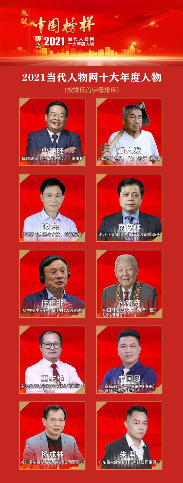 当代人物网“2021十大年度人物”获得者分别是: