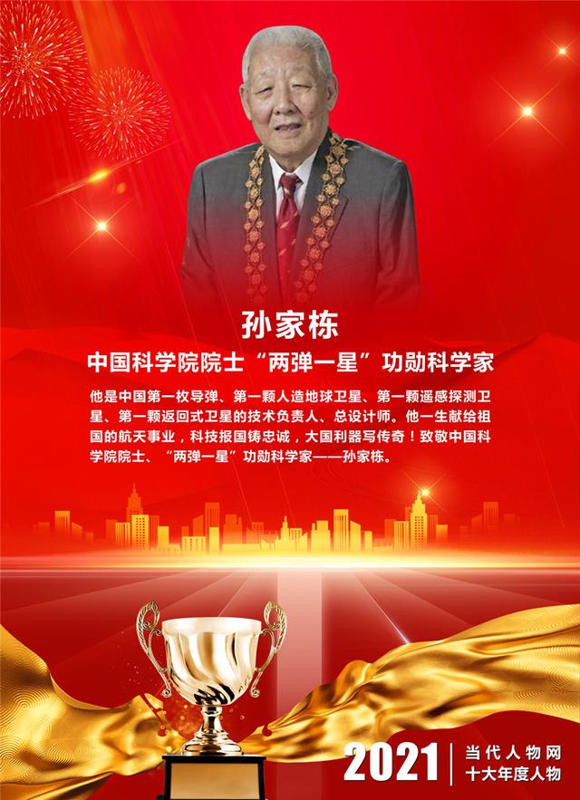 ▋颁奖词:他是中国第一枚导弹、第一颗人造地球卫星、第一颗遥感探测卫星、第一颗返回式卫星的技术负责人、总设计师。他一生献给祖国的航天事业,科技报国铸忠诚,大国利器写传奇!致敬中国科学院院士、“两弹一星”功勋科学家——孙家栋。