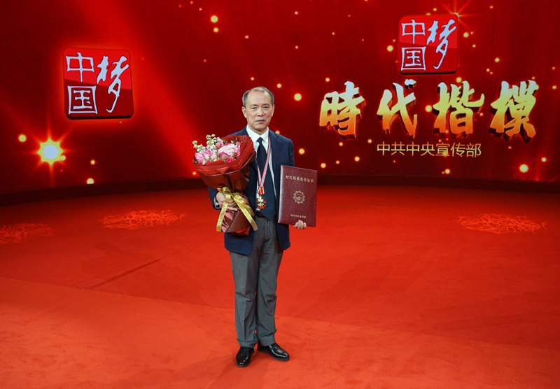 在北京举行的“时代楷模”发布仪式现场,曲建武展示“时代楷模”奖章和荣誉证书(12月27日摄)。新华社记者 才扬 摄